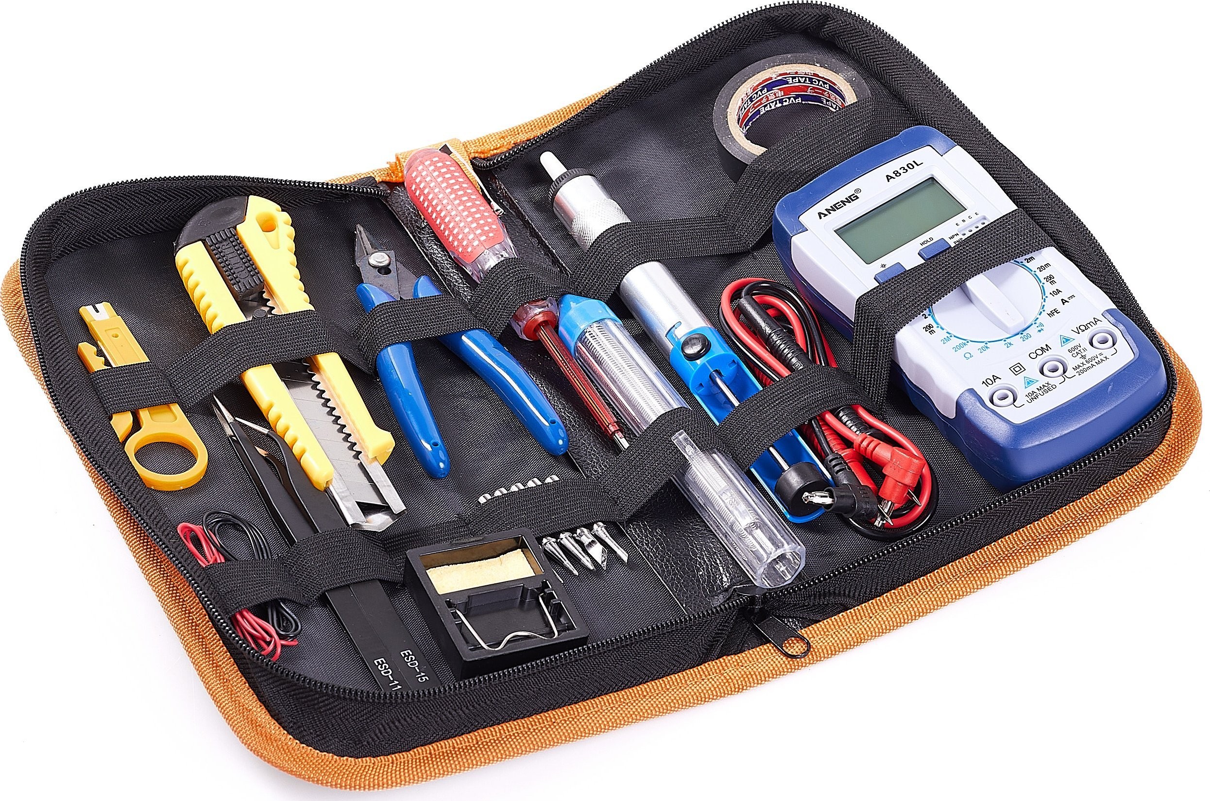 Ideales Etui für den Transport des Lötkolbens und anderer Zubehörteile wie Flussmittel, Multimeter oder Lötzinn