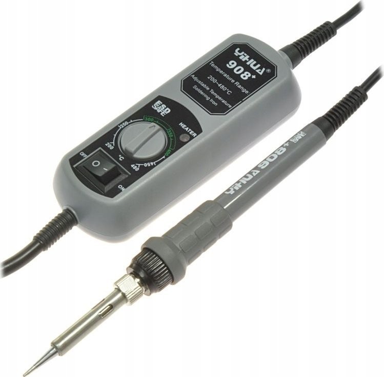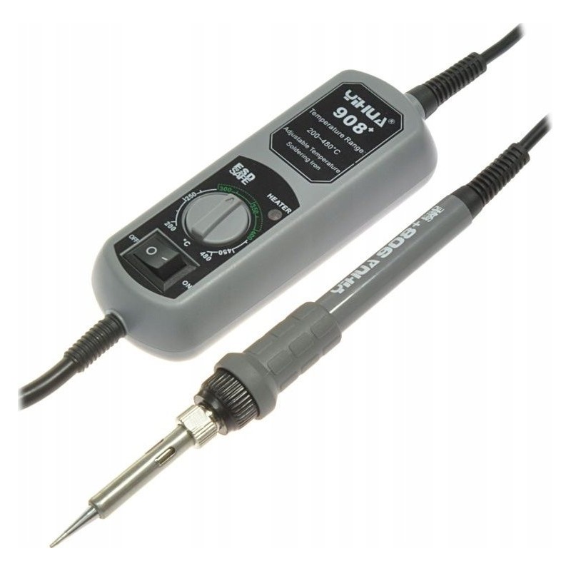 Die Lötstation Yihua 908+ ist mit einem leistungsstarken 50-W-Lötkolben ausgestattet, der die Spitze schnell auf die gewünschte Temperatur aufheizt und den Wärmeverlust beim Löten ausgleicht. Sie verfügt über einen ESD-SAFE-Schutz, der elektronische Bauteile vor Beschädigungen schützt. Der Griff der Station ist klein und komfortabel in der Handhabung, und dank der Verwendung eines gängigen Spitzentyps können in der Station über 30 verschiedene Spitzentypen verwendet werden.