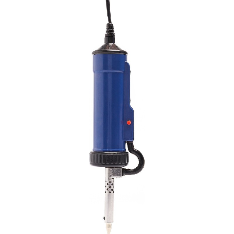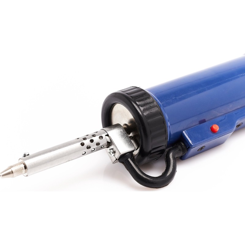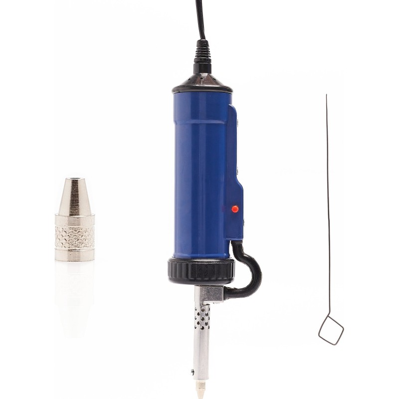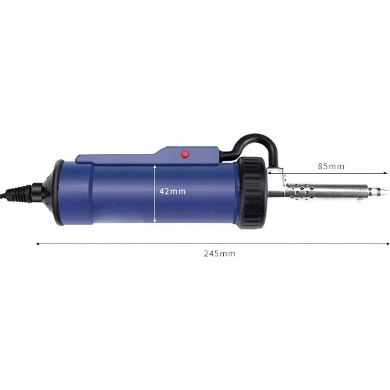 Handentlötgerät zum Entfernen von elektronischen Bauteilen von Leiterplatten (PCB). Das Entlötgerät verfügt über ein integriertes System, das beim Betätigen des Abzugs einen Unterdruck erzeugt. Im Vergleich zu herkömmlichen Absauggeräten ist es komfortabler und ermöglicht schnelleres Arbeiten – es erhitzt das Zinn selbst. Der leistungsstarke Heizkörper bewältigt viele schwierige Fälle. Das aus hochwertigen Materialien gefertigte Absauggerät in blauer Farbe sieht phänomenal aus.
