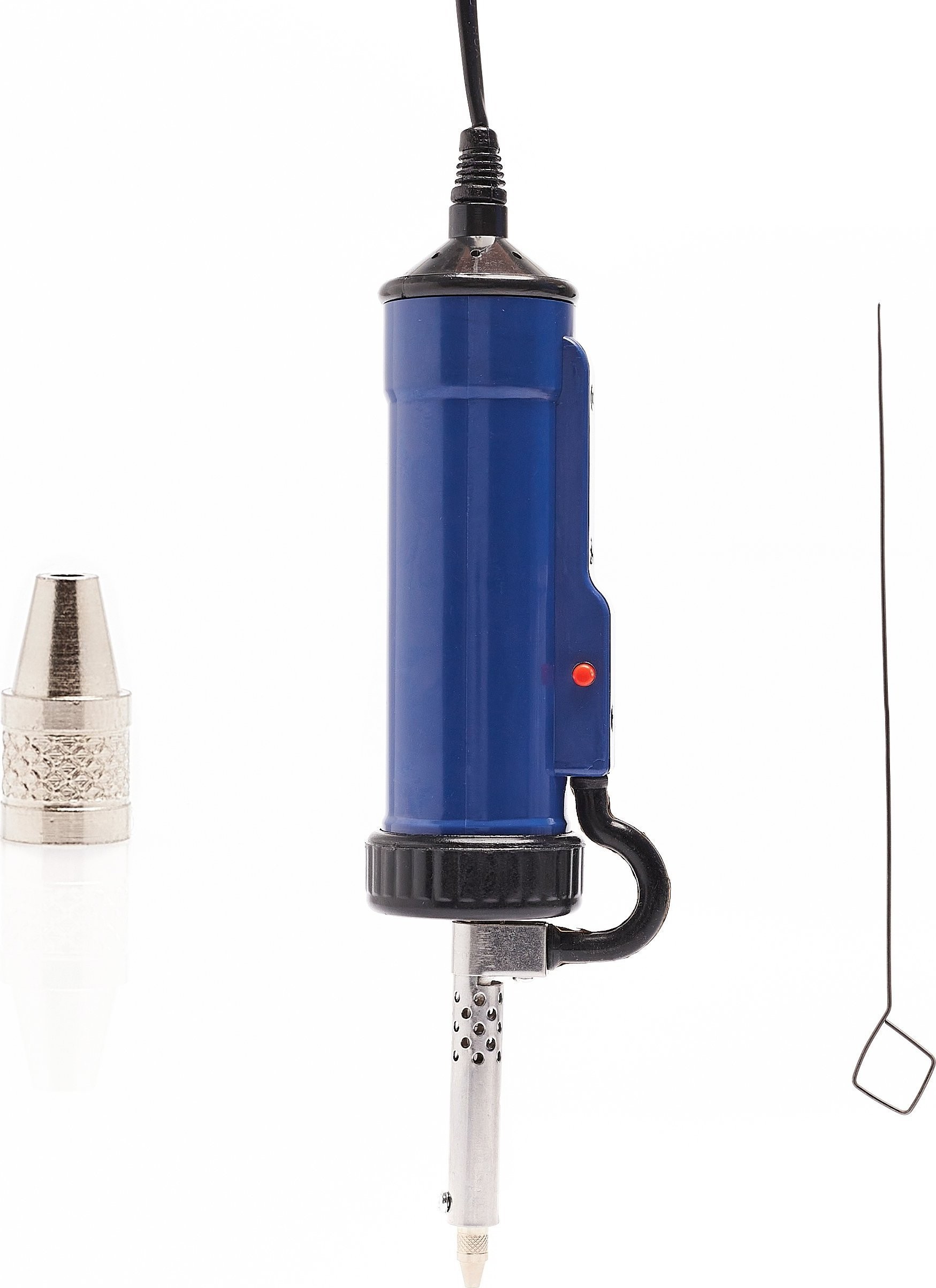 Die Entlötpistole eignet sich zum Entlöten von Durchsteckbauteilen aus Leiterplatten (PCBs). Der Absauger ist ein unverzichtbares Werkzeug in jeder professionellen Werkstatt. Die Spitze der Entlötpistole, also die Düse, wird kontinuierlich beheizt.