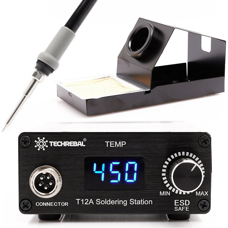 Set: Techrebal T12 75-W-Lötstation mit 3 Lötspitzen + Zubehör