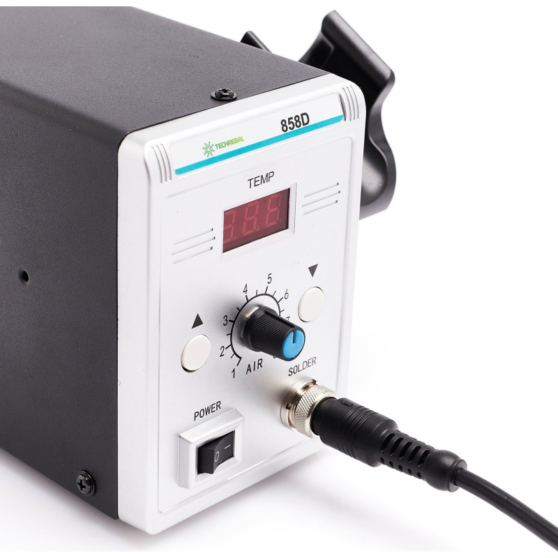 ⚡ Das Modell 858D ist mit einem flexiblen Schlauch für den Heißluftfön ausgestattet, was die Mobilität und den Arbeitskomfort erhöht.