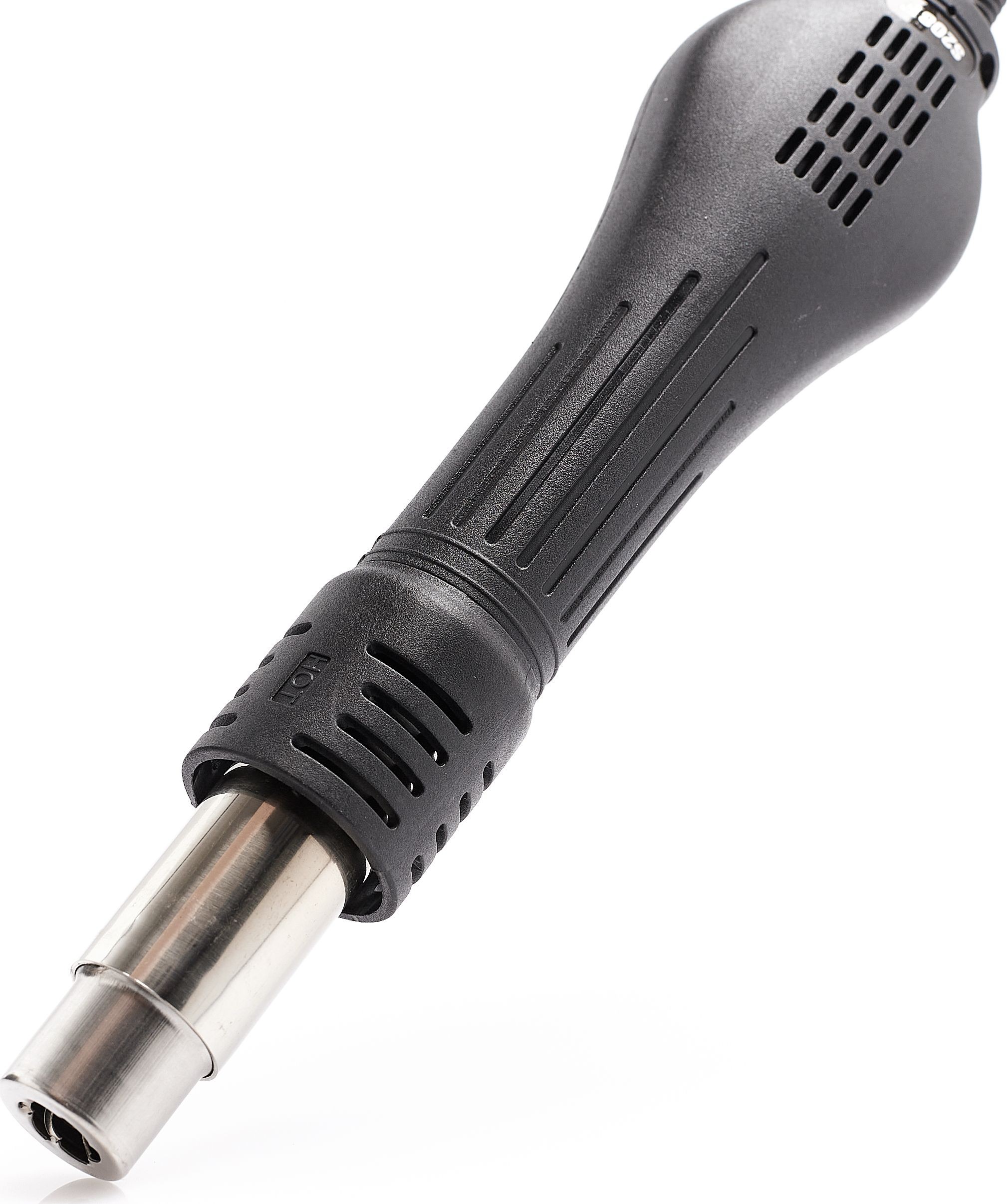 Heißluft-Lötstation (Hot-Air) und Lötkolben; das Gerät dient zum Löten und Entlöten von Bauteilen in der Elektronik und eignet sich sowohl für Hobbybastler als auch für professionelle Werkstätten. Das Gerät zeichnet sich durch ein kompaktes Gehäuse aus, das wenig Platz beansprucht.