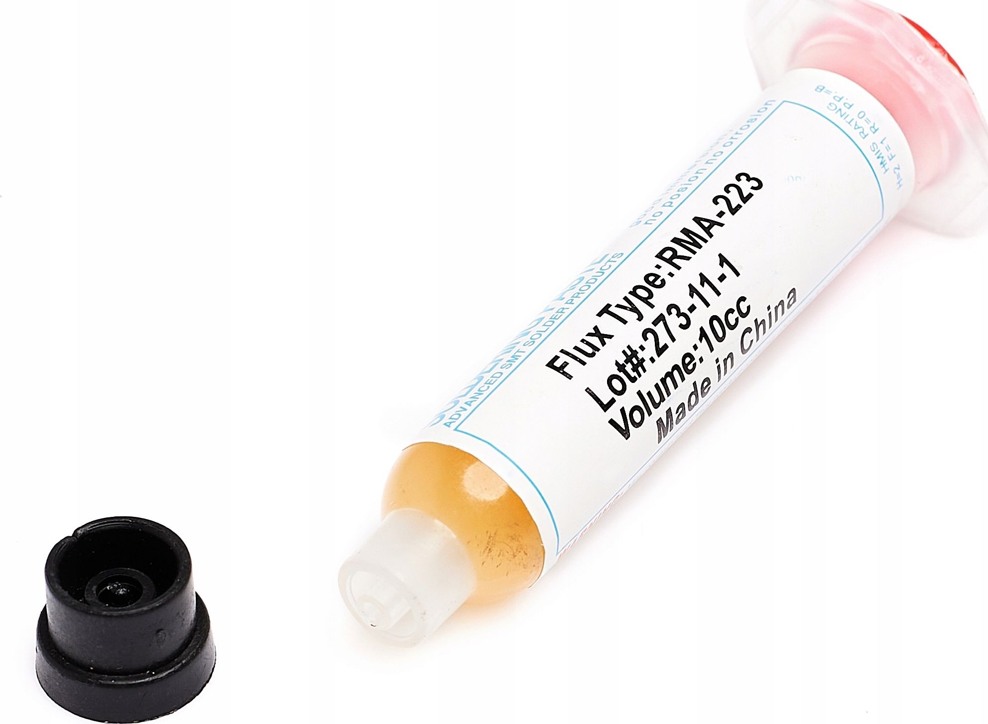 Hochwertiges Lötflussmittel, leicht zu verteilen, mit hoher Intensität und Benetzbarkeit der Lötfläche. Beeinträchtigt die Eigenschaften von IC- und PCB-Bauteilen nicht und erfordert keine Reinigung nach dem Lötvorgang (NO CLEAN-Typ). Es hat eine gelartige Konsistenz, was die Anwendung erleichtert. Das Flussmittel wird auch zur Reparatur beschädigter Bälle sowie zum Ein- und Auslöten von z. B. BGA-Bausteinen in Mobiltelefonen verwendet.