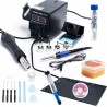 Heißluft-Lötstation (Hot-Air) und Lötkolben; das Gerät dient zum Löten und Entlöten von Bauteilen in der Elektronik und eignet sich sowohl für Hobbybastler als auch für professionelle Werkstätten. Das Gerät zeichnet sich durch ein kompaktes Gehäuse aus, das wenig Platz beansprucht.