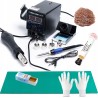 Heißluft-Lötstation (Hot-Air) und Lötkolben; das Gerät dient zum Löten und Entlöten von Bauteilen in der Elektronik und eignet sich sowohl für Hobbybastler als auch für professionelle Werkstätten. Das Gerät zeichnet sich durch ein kompaktes Gehäuse aus, das wenig Platz beansprucht.