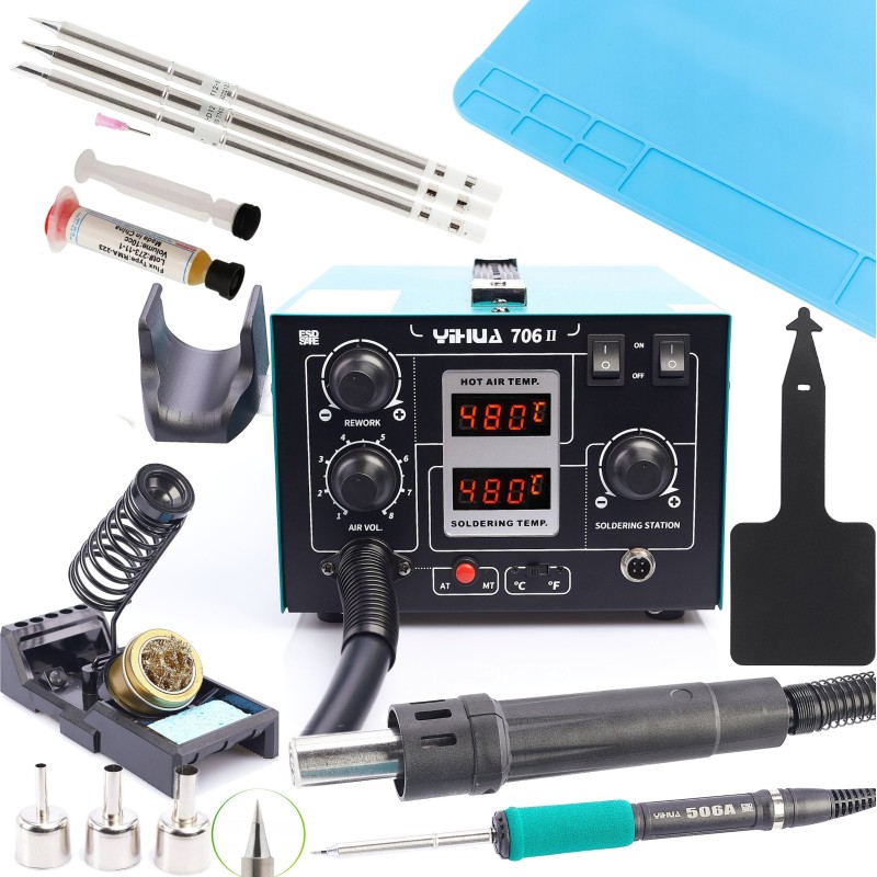 Professionelle 2-in-1-Lötstation mit Heißluft + T12-System Yihua 706 II + Lötzubehörset