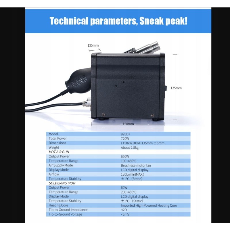 • 2-in-1-Station Yihua 995D+ mit Heißluftsystem