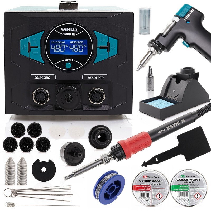 Löt- und Entlötstation Yihua 948D-III Set mit Lötpaste, Kolophonium und Zinn