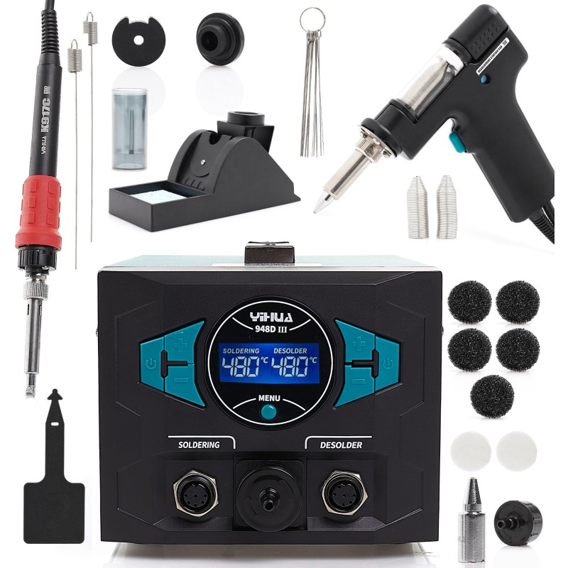 Die Lötstation Yihua 948D-III ist ein modernes Gerät, das Löt- und Entlötfunktionen vereint und sich somit ideal sowohl für Profis als auch für Hobbybastler eignet. Mit einer Leistung von 290 W und einem breiten Temperaturbereich von 100 °C bis 480 °C garantiert sie präzise und effektive Ergebnisse bei vielfältigen Lötanwendungen.