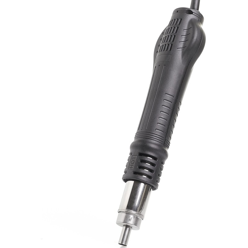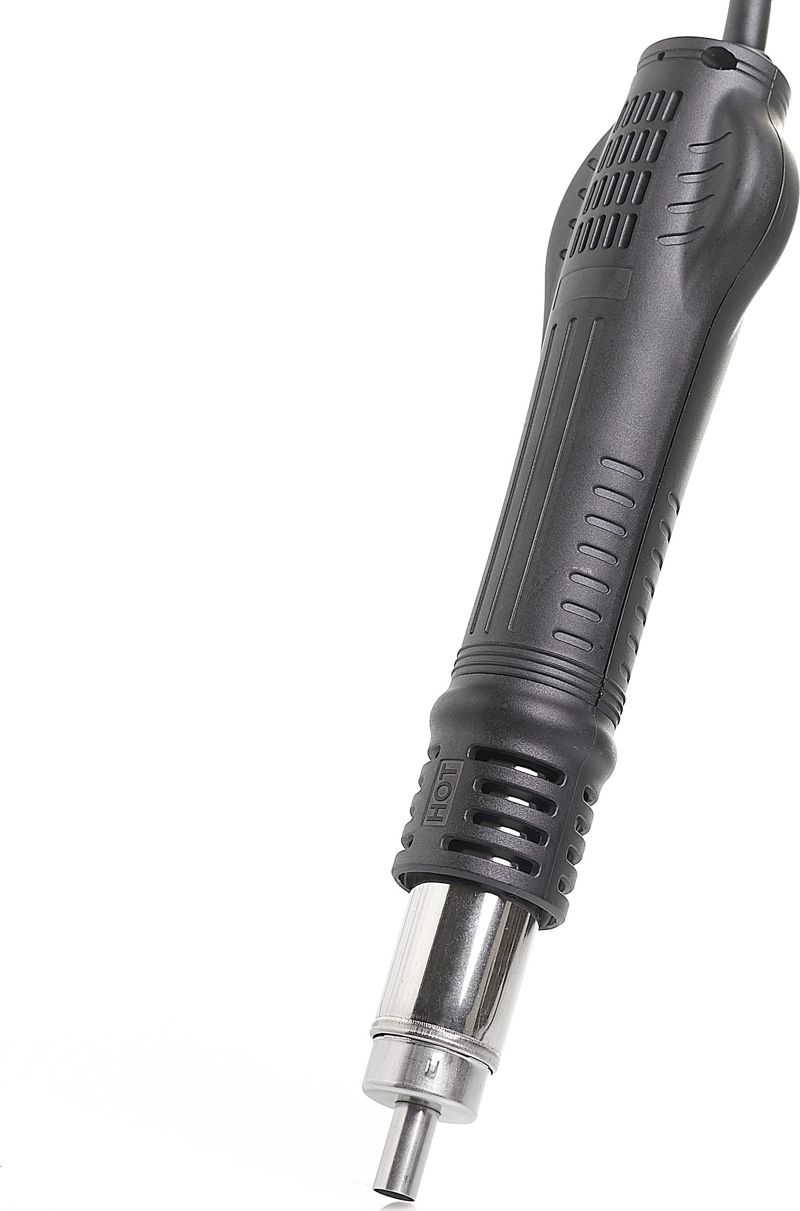 Ergonomisch geformter Griff: Der Griff der Station wurde so konzipiert, dass er maximalen Komfort bietet und Ermüdungserscheinungen bei langem Einsatz minimiert. Die ergonomische Form und die leichte Bauweise ermöglichen ein präzises Manövrieren des Werkzeugs auch an schwer zugänglichen Stellen.