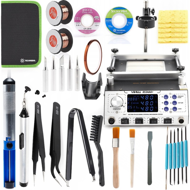 Lötstation / Vorheizgerät Yihua 853AAA+ 1270 W + Umfangreiches Set mit 32 Lötzubehörteilen