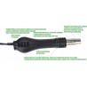 • Heißluft, zum Auslöten und Einlöten von elektronischen Bauteilen, z. B. BGA, SMD usw. Der Luftstrom in der Station wird durch einen Lüfter erzeugt.