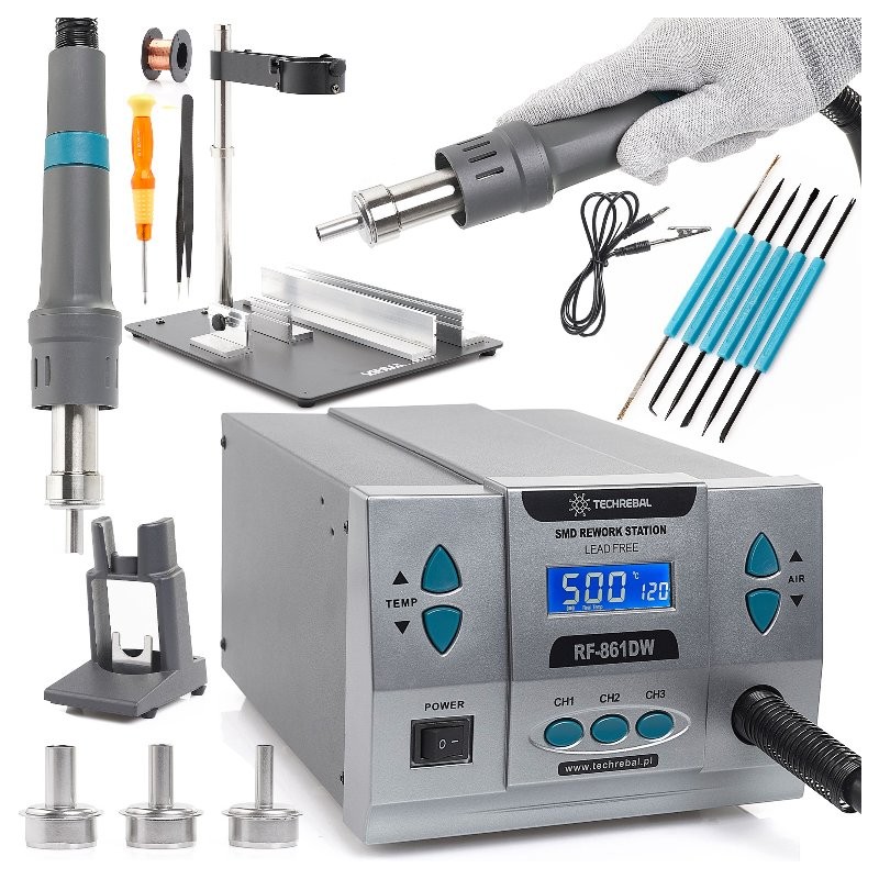 Präzisions-Heißluft-Lötstation Techrebal RF-861DW 1000 W mit Halterung und Lötkolben