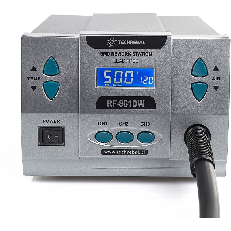 Die Präzisions-Heißluft-Lötstation Techrebal RF-861DW 1000W ist die perfekte Lösung für Elektronikfachleute. Dank ihrer leistungsstarken Turbine und der einfachen Bedienung gewährleistet dieses Gerät eine hervorragende Lötqualität, vergleichbar mit den Modellen Quick 861DW. Das digitale Display ermöglicht präzise Einstellungen, was diese Station zu einem unschätzbaren Werkzeug in jeder Werkstatt macht.