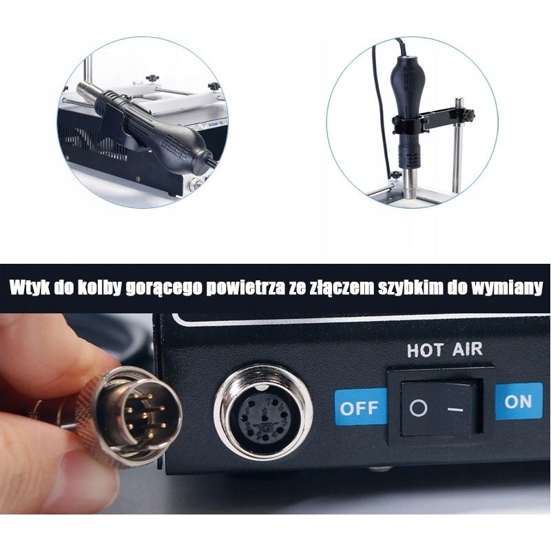 3-in-1-Funktionalität: Lötkolben, Heißluftgebläse und Lötkolben
