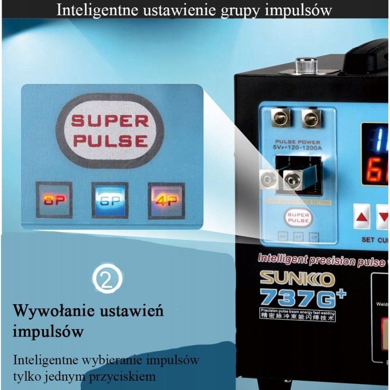 SUNKKO 737G+ Schweißgerät mit zwei Impuls-Schweißmodi.