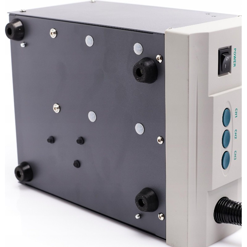Professionelle Heißluft-Lötstation (Hotair) mit einer Leistung von 1000 W. Das Gerät ist für Profis konzipiert und verfügt über eine präzise Temperaturregelung im Bereich von 100–500 °C unter Verwendung eines Temperatursensors im geschlossenen Regelkreis. Das Gerät verfügt über eine sehr hohe Leistung, wodurch die Aufheizzeit auf ein Minimum reduziert wurde. Zusätzlich ist es mit einem automatischen Kühlsystem ausgestattet, das das Heizelement schützt. Komfortables, gut lesbares Display mit Hintergrundbeleuchtung. Die Station kann 3 Einstellungen speichern; dank des Speichers (Kanäle – CH1, CH2, CH3) speichert das Gerät die Einstellungen für Temperatur und Luftstrom.