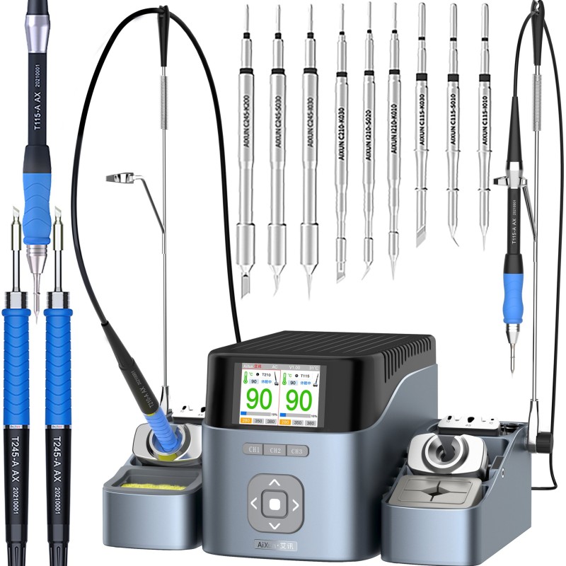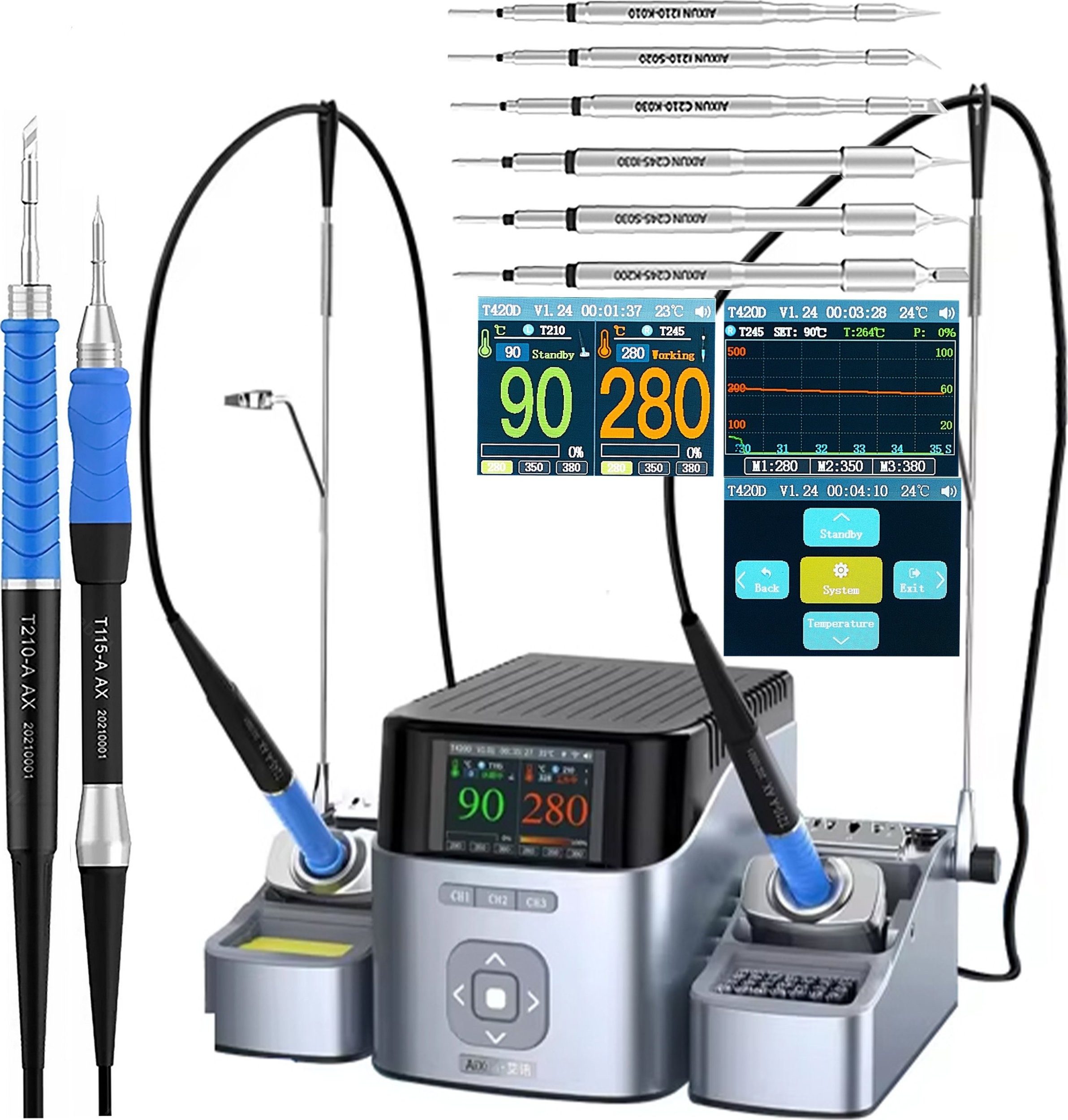 Präzisions-Lötstation Aixun T420D mit 3 Lötkolben und 9 Lötspitzen (C210, C115, C245)