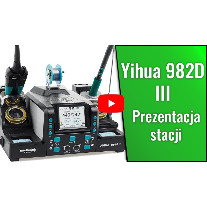 Die Lötstation Yihua 982D-III ist ein fortschrittliches Werkzeug, das die Funktionen eines Lötkolbens und einer Heißluftpistole vereint und so eine außergewöhnliche Präzision beim Löten und Entlöten von SMD-Bauteilen gewährleistet. Ausgestattet mit modernen Technologien wie automatischer Temperaturkalibrierung und einem ergonomischen Design ist diese Station die ideale Wahl sowohl für Profis als auch für Hobbybastler. Zusätzliches Zubehör, darunter hochwertiges Zinn, Kolophonium und ein Absauggerät, garantiert volle Leistungsfähigkeit bei jeder Reparaturarbeit.