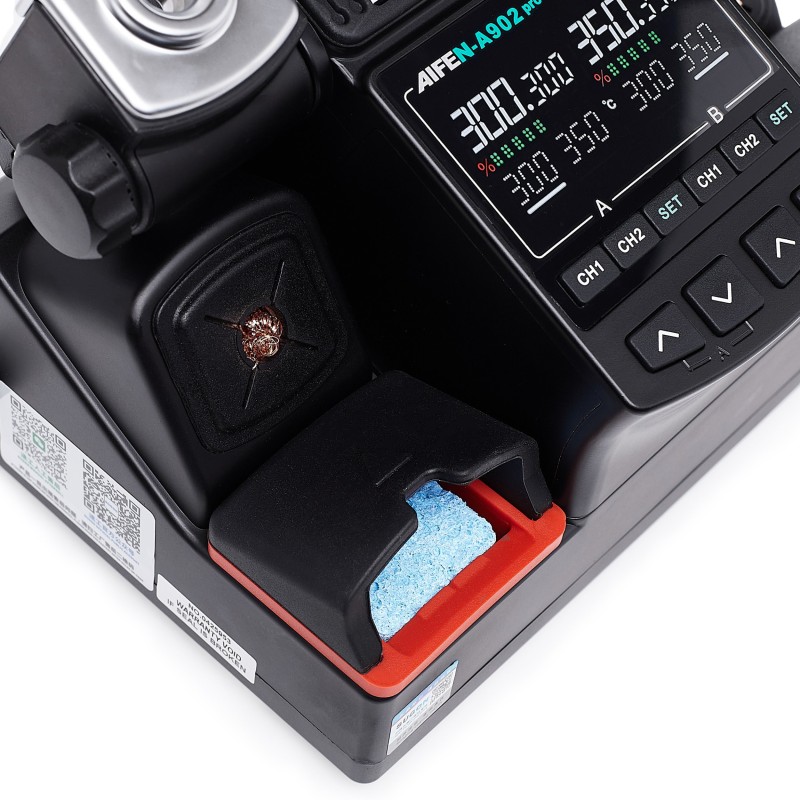 Der zweikanalige Aufbau der Lötstation Aifen A902 Pro ermöglicht die gleichzeitige Nutzung von zwei Lötspitzen, was die Arbeitseffizienz deutlich steigert. Anwender können frei zwischen verschiedenen Löttechniken wechseln, ohne die Arbeit zu unterbrechen, was äußerst komfortabel ist und Zeit spart.