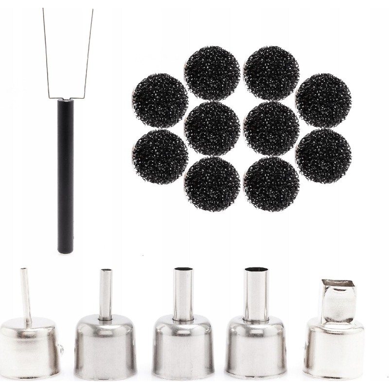 • Düsensatz: rund mit 2,5 mm Durchmesser, rund mit 4,4 mm Durchmesser, rund mit 6 mm Durchmesser, rund mit 9 mm Durchmesser, quadratisch 12x12 mm