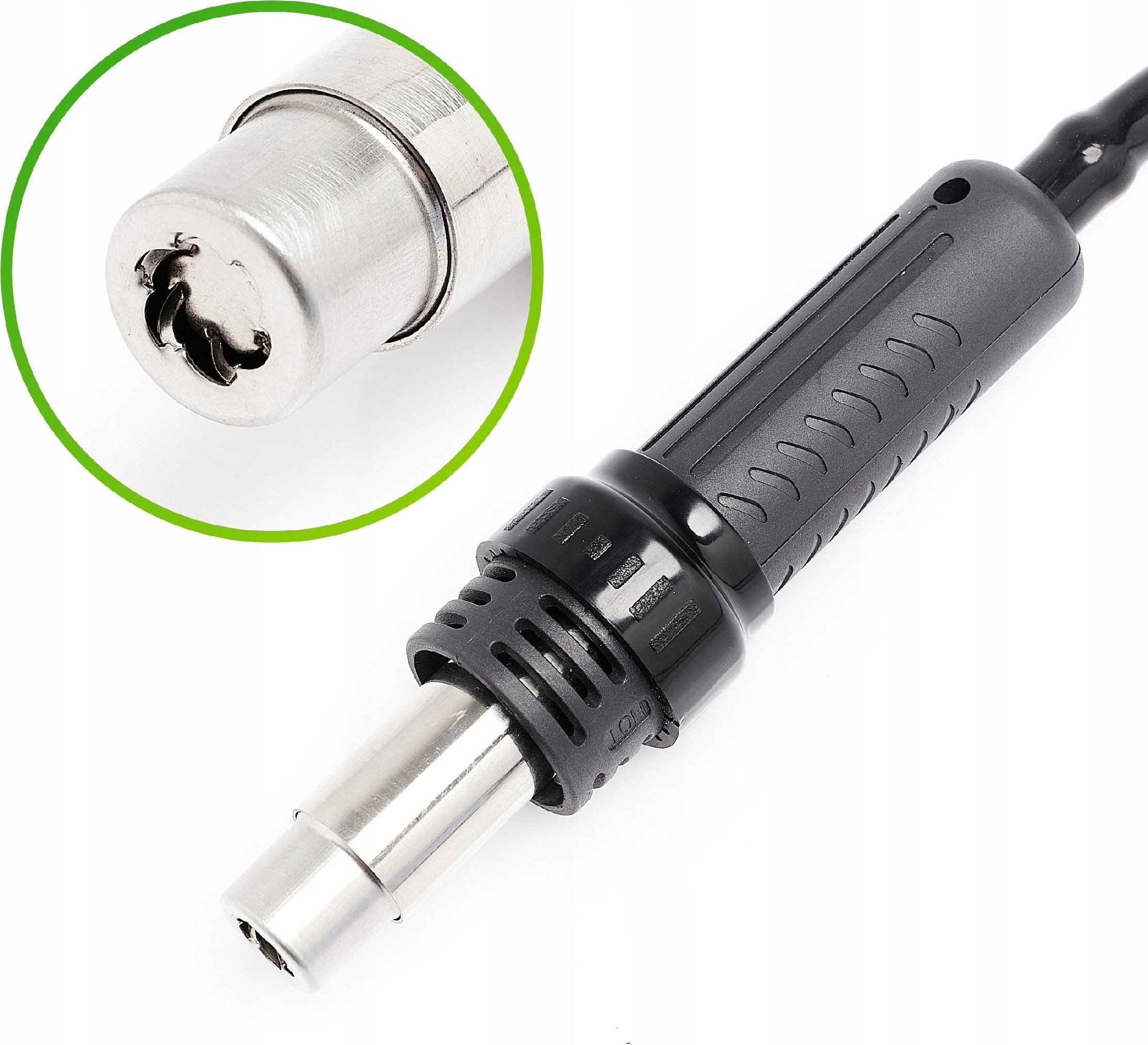 • 3 Arbeitsprogramme – die Station kann 3 Arbeitsprogramme für Heißluft und Lötkolben speichern. Je nach Art der Arbeit – Montage oder Demontage – stellen wir das entsprechende Programm ein.
