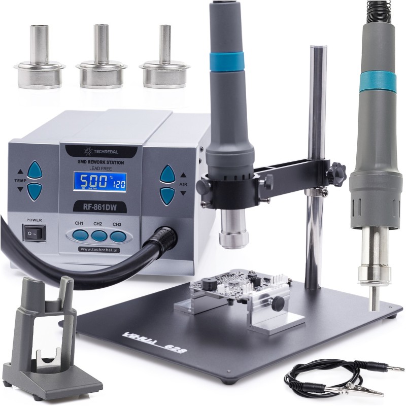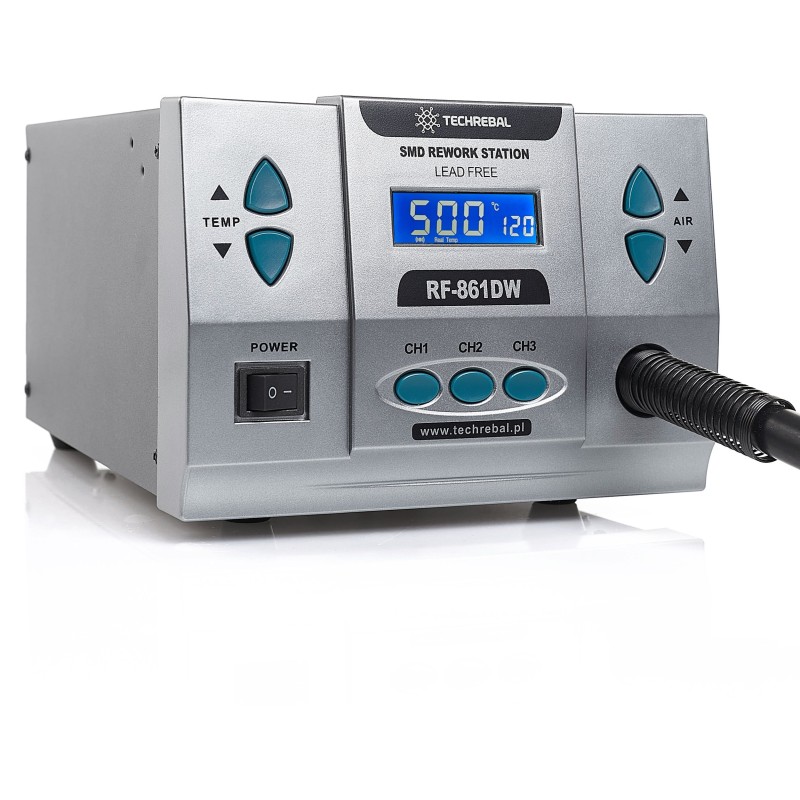 Die Heißluft-Lötstation Techrebal RF-861DW mit einer Leistung von 1000 W ist die perfekte Lösung für Profis im Bereich der Elektronik. Dank moderner Technologie und einfacher Bedienung ermöglicht sie präzises Löten und effektive Reparaturen an elektronischen Bauteilen.