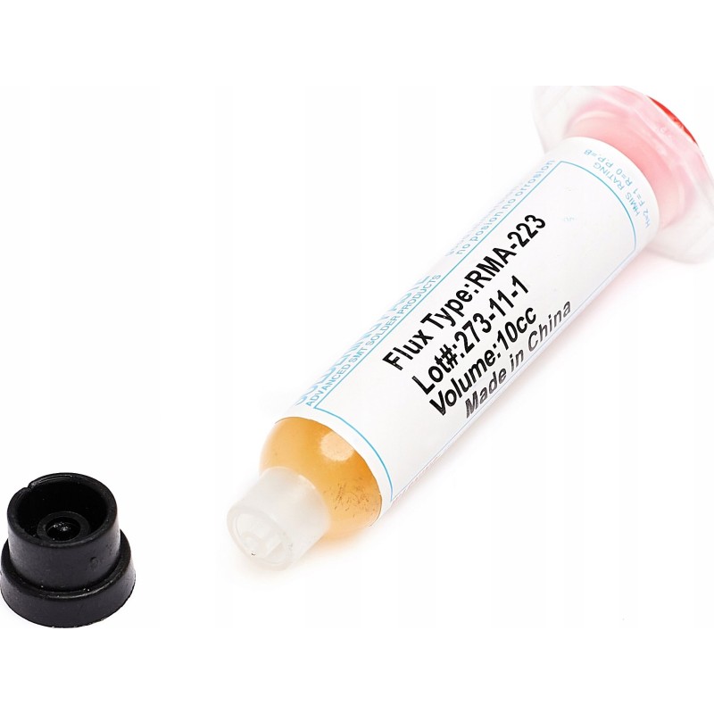 Hochwertiges Lötflussmittel, leicht zu verteilen, mit hoher Intensität und Benetzbarkeit der Lötfläche. Beeinträchtigt die Eigenschaften von IC- und PCB-Bauteilen nicht, erfordert keine Reinigung nach dem Lötvorgang (ist vom Typ NO CLEAN). Hat eine gelartige Konsistenz, was die Anwendung erleichtert. Das Flussmittel wird auch zur Reparatur beschädigter Bälle sowie zum Ein- und Auslöten von z. B. BGA-Bausteinen in Mobiltelefonen verwendet.