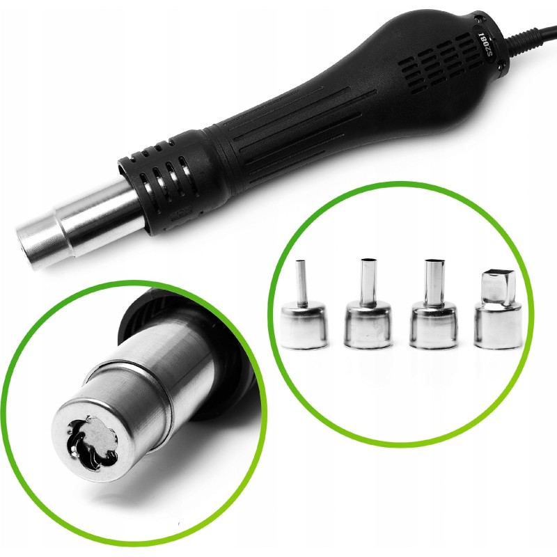 Der Heißluftlötkolben ist mit einem Keramik-Heizelement ausgestattet, das sich schnell und gleichmäßig erwärmt. Das Heizelement besteht aus Hartlegierungen, die einen langen Betrieb bei hohen Temperaturen ermöglichen, ohne sich dabei zu verformen. Dies erhöht die Betriebsstabilität erheblich und verlängert die Lebensdauer des Heizelements.