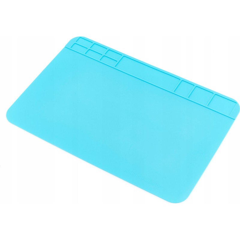 Hochwertige Silikonmatte mit profilierten Fächern, die den Arbeitskomfort in jeder Werkstatt verbessert. Die antistatischen Eigenschaften und speziellen Fächer ermöglichen die Organisation und Sortierung von elektronischen Bauteilen, Schrauben usw. während der Arbeit. Die große, flache Oberfläche und die hohe Temperaturbeständigkeit ermöglichen das Löten von Platinen und Bildschirmen direkt auf der Matte. Die Matte ist beständig gegen sehr hohe Temperaturen bis zu 500 °C und ermöglicht das Löten direkt auf der Matte. Sie ist mit mehreren verschiedenen Fächern ausgestattet, in denen z. B. Schraubendreher, Schrauben, Flussmittel, Zinn und andere kleine, im Servicebereich verwendete Teile untergebracht werden können. Sie eignet sich ideal für Werkstätten, die sich mit der Reparatur von Mobiltelefonen, Tablets und Computern befassen, sowie für andere Bereiche, in denen eine solide, hochtemperaturbeständige Antistatikmatte benötigt wird. Die Matte kann mit Wasser, Isopropylalkohol oder einer anderen Reinigungsflüssigkeit für Leiterplatten gereinigt werden. Die Matte ist mit Organizern ausgestattet, die es ermöglichen, den Arbeitsplatz perfekt in Ordnung zu halten – alle Schrauben und andere Metallkomponenten befinden sich an einem Ort.