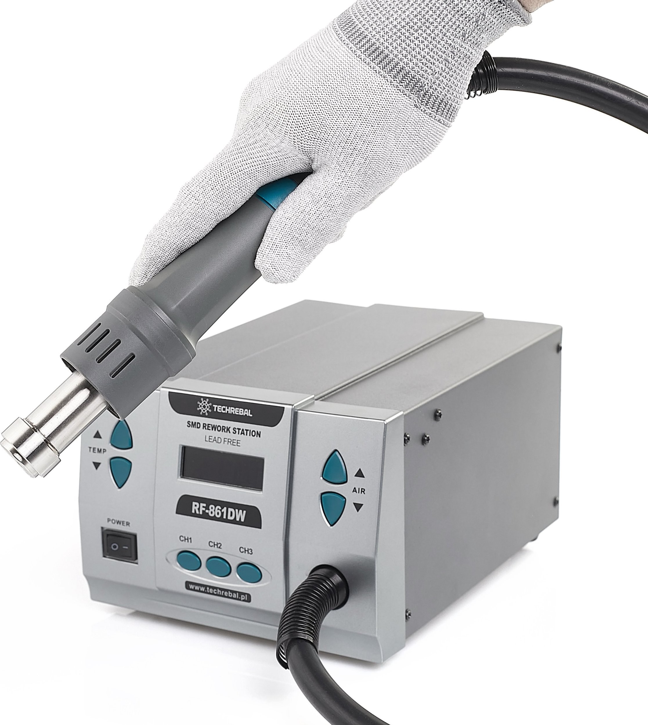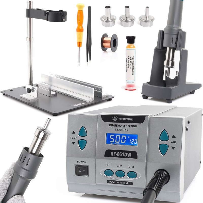 Set: Heißluft-Lötstation Techrebal RF-861DW 1000 W + Halterung für den Lötkolben