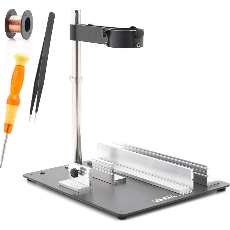 Der Yihua 628 ist ein unverzichtbarer Bestandteil jeder Werkstatt und bietet viel Komfort. Dank der Halterung für den Heißluftgebläse haben wir die Hände frei, was bei der Arbeit sehr wichtig ist. In Kombination mit dem Metallständer und den magnetischen Halterungen in zwei Größen bildet er einen idealen Arbeitsplatz.