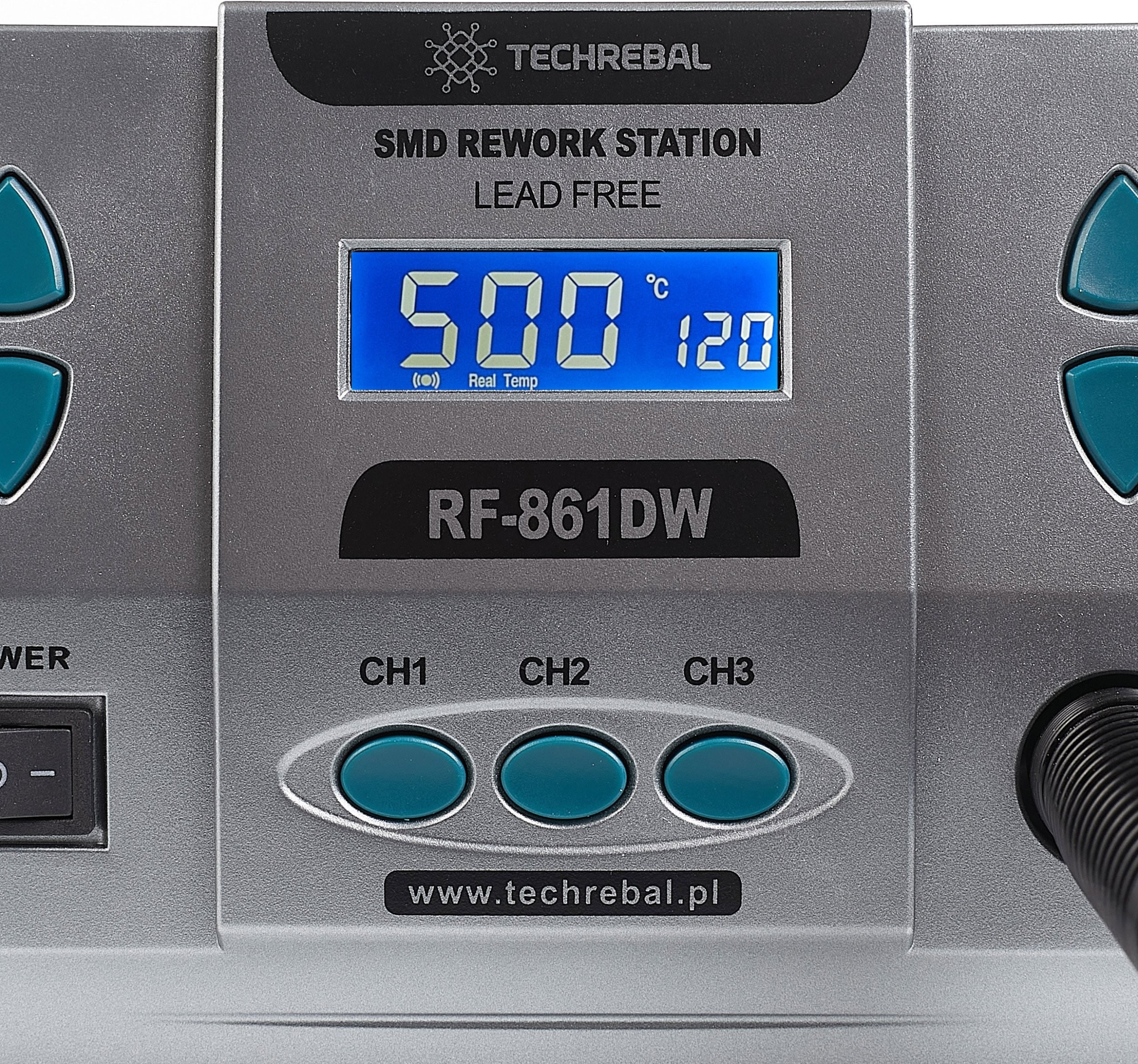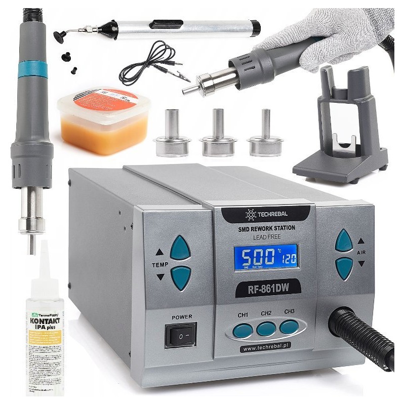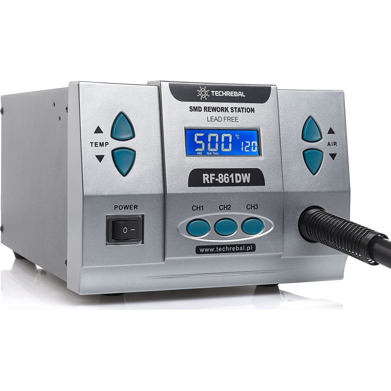 Die Heißluft-Lötstation Techrebal 861DW 1000W ist ein professionelles Gerät für präzise Lötarbeiten, ideal für Fachleute in der Elektronikbranche. Sie ist mit einer leistungsstarken Turbine ausgestattet und ermöglicht präzise Einstellungen, was ein effektives Löten garantiert. Sie ist einfach zu bedienen und verfügt über ein digitales Display, das präzise Einstellungen erleichtert und eine hohe Arbeitsqualität gewährleistet. Die Station, die mit unserem Firmenlogo versehen ist, steht für Professionalität und Vertrauen. Nach zahlreichen Tests weist die Station aufgrund ihrer ähnlichen Konstruktion ähnliche Parameter wie die Station Quick 861DW auf. Wir bieten auch Zugang zu allen Ersatzteilen.