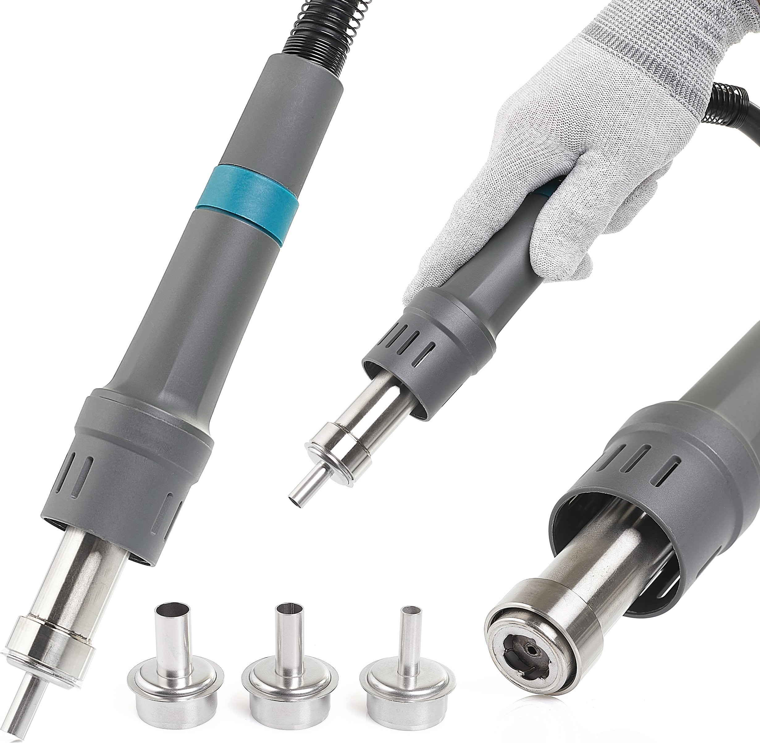 Das langlebige Heizelement erreicht schnell die gewünschte Temperatur, was für eine effiziente Arbeitsweise sorgt. Das Heizelement verfügt zudem über eine verlängerte Lebensdauer. Nach der erneuten Verwendung des Kolbens kehrt das Gerät schnell zur zuvor eingestellten Temperatur zurück. Sichere Einstellungen werden durch eine Passwortsperre sowie eine Schutzfunktion gegen versehentliches Drücken der Tasten gewährleistet. Die Station bietet dank des bürstenlosen Motors einen großen Einstellbereich für den Luftstrom und wurde mit antistatischer Technologie (ESD Safe) hergestellt, was für ihre hohe Qualität spricht.