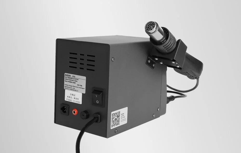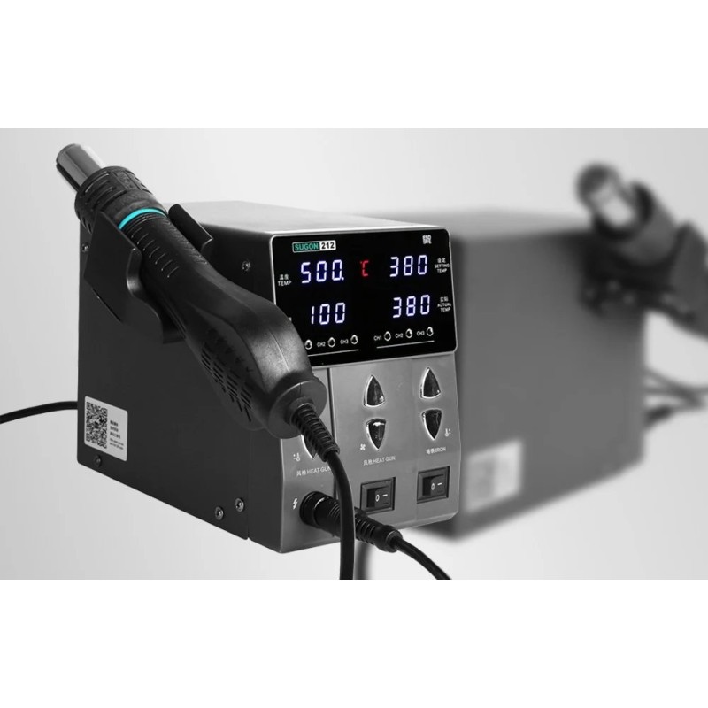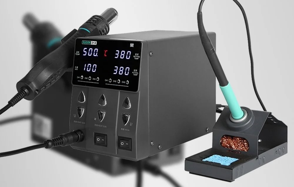 Die Lötstation SUGON 212 vereint die Funktionen eines Lötkolbens und eines Heißluftgeräts, wodurch wertvoller Platz am Arbeitsplatz gespart wird. So können Anwender den vollen Funktionsumfang nutzen, ohne zwei separate Geräte anschaffen zu müssen.