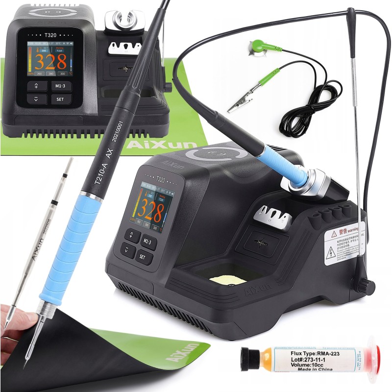 Set: Professionelle Lötstation Aixun T320 mit Lötkolben C210 und Lötmatte