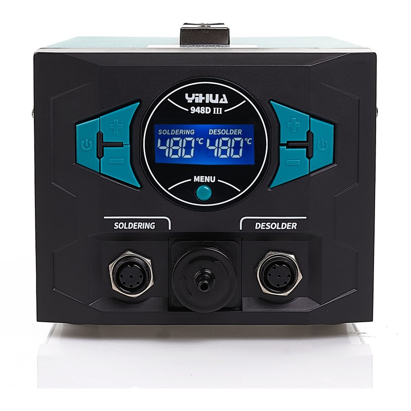 Die Lötstation Yihua 948D-III ist ein fortschrittliches Werkzeug, das Löt- und Entlötfunktionen vereint und sich somit sowohl für professionelle Elektroniker als auch für Hobbybastler ideal eignet. Dank ihrer Vielseitigkeit ermöglicht sie präzises Löten und Entlöten von Bauteilen in verschiedenen Geräten, von audiovisuellen Geräten bis hin zu Elektrogeräten.
