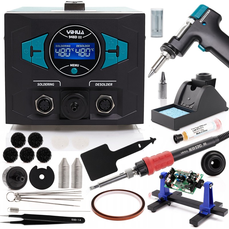 2-in-1-Lötstation Yihua 948D-III – Leiterplattenhalter, ESD-Pinzette, Flussmittel