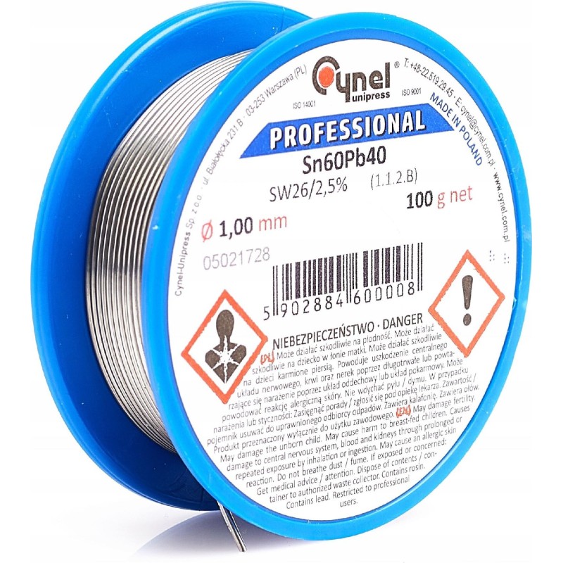 7️⃣ Lötzinn mit Flussmittel Sn60Pb40 1,00 mm 100 g Cynel