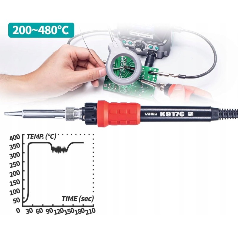 Die Temperatur kann im Bereich von 200 bis 480 °C gewählt werden, und das integrierte PID-Temperaturregelungsprogramm hält die Temperatur konstant und sorgt so für ein gleichmäßiges Löten.