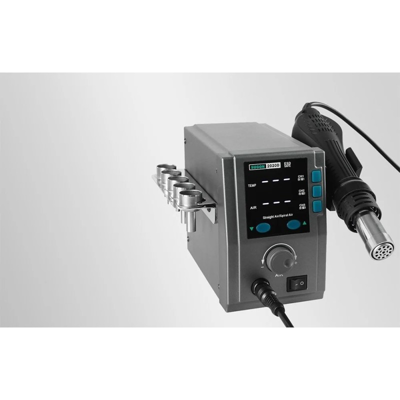 Die Lötstation SUGON 2020D ist mit einem innovativen Düsenhalter ausgestattet, der einen blitzschnellen Austausch der Düsen ermöglicht. Dadurch kann der Anwender das Gerät schnell an verschiedene Aufgaben anpassen, was die Arbeitseffizienz erheblich steigert.