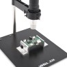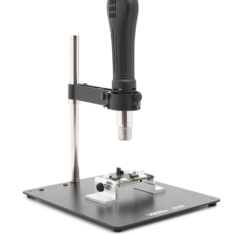 Dieses Gerät vereint die Funktionen eines Lötkolbens und eines Heißluftgeräts, was es ideal für vielfältige Lötarbeiten macht. Die Kalibriermöglichkeit der Station und die intuitive Benutzeroberfläche sorgen für eine einfache und komfortable Bedienung.