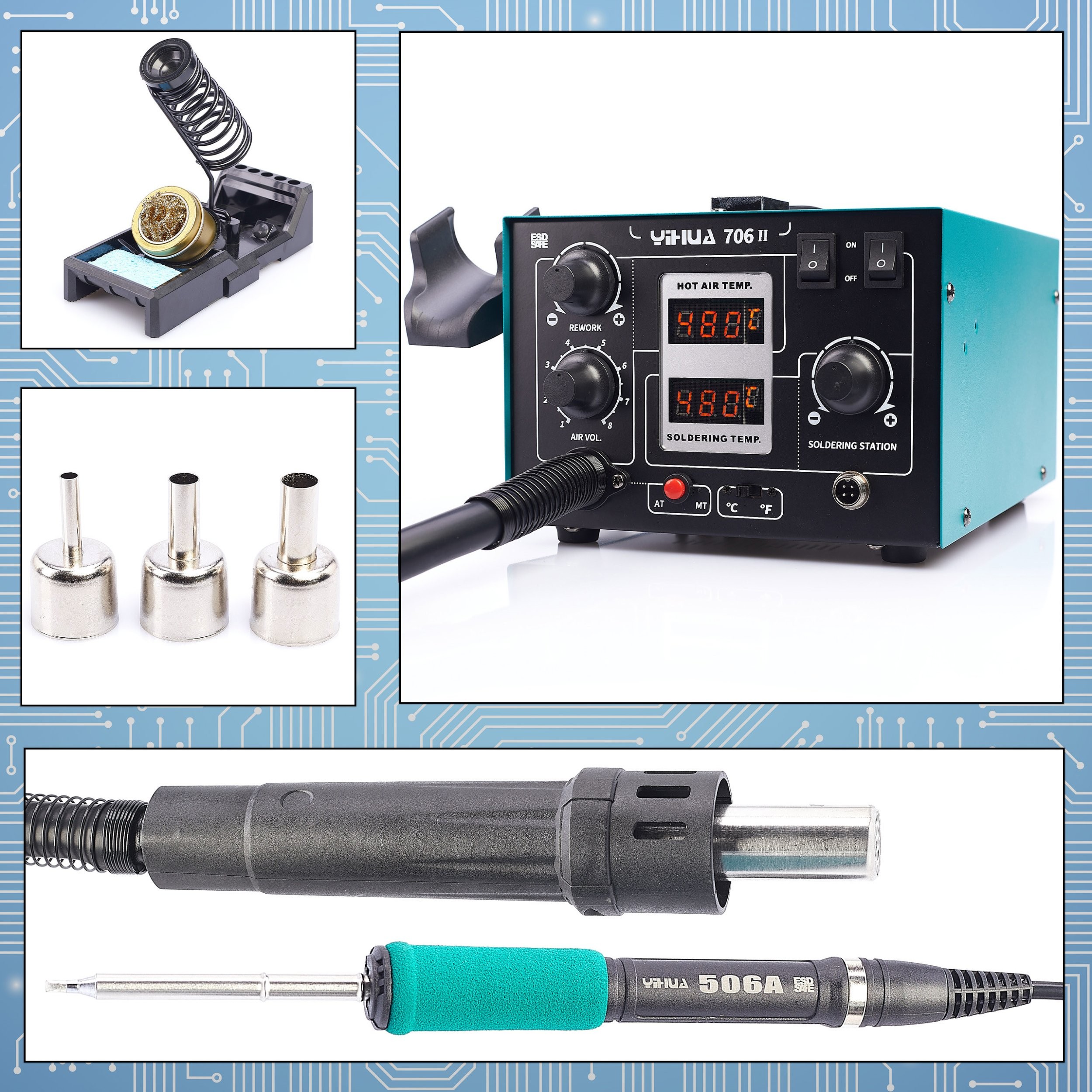 2-in-1-Lötstation mit Heißluftfunktion T12 Yihua 706 II – Professionelles Lötwerkzeug