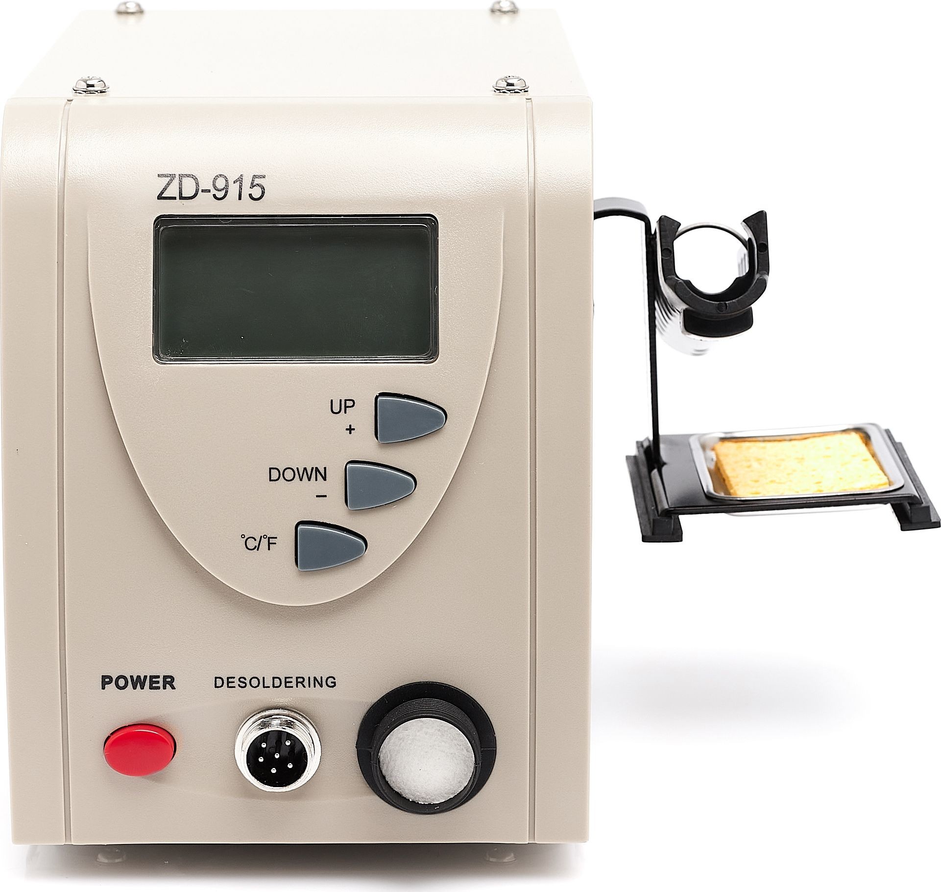 Die Entlötstation eignet sich zum Entlöten von durchgesteckten elektronischen Bauteilen aus Leiterplatten (PCBs). Eine Entlötstation ist ein unverzichtbares Element in jeder professionellen Werkstatt. Die Spitze der Entlötstation, also die Düse, wird kontinuierlich auf den eingestellten Temperaturwert erhitzt. Das Heizelement des Kolben- bzw. Pistolenkopfs ist mit einem PTC-Sensor ausgestattet, der in das leistungsstarke 90-W-Heizelement integriert ist. Das Ganze wird vom Mikroprozessor der Entlötstation ZD-915 gesteuert, der eine präzise Temperaturregelung und -stabilisierung beim Entlöten elektronischer Bauteile gewährleistet.