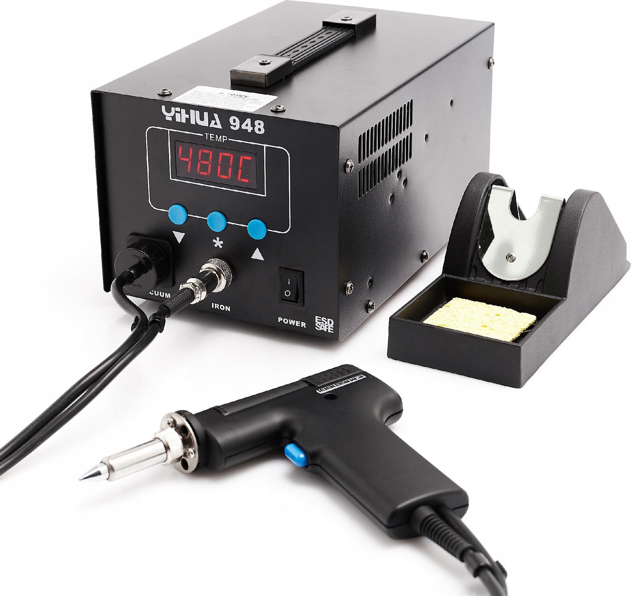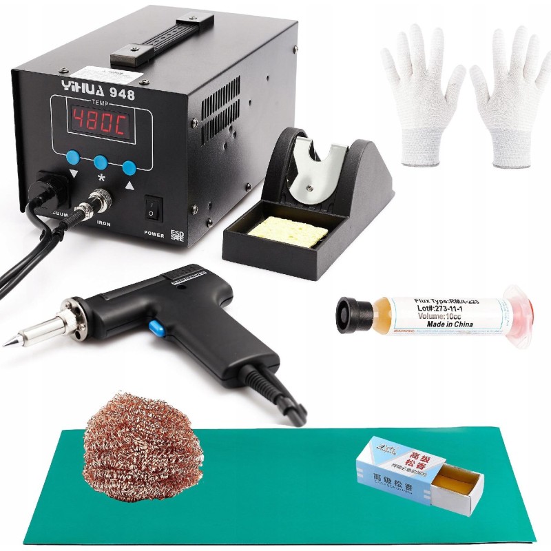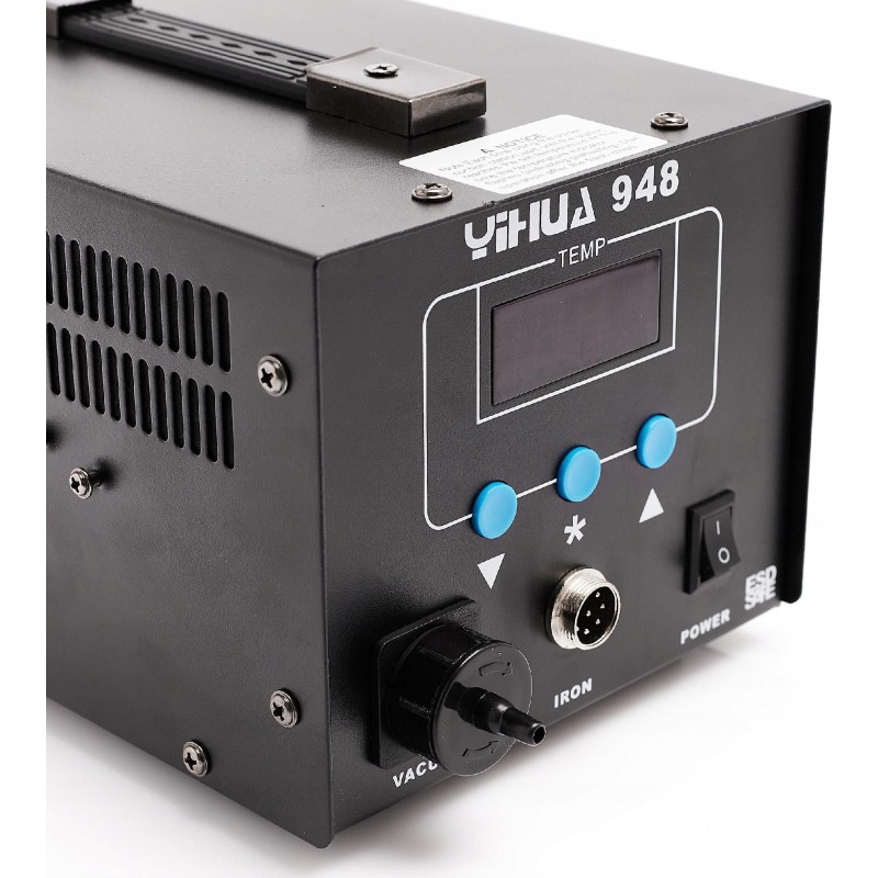 Lötstation Yihua 948 mit Entlötstation für Zinn. Dank leistungsstarker Heizelemente lassen sich alle elektronischen Bauteile schnell und bequem löten bzw. entlöten.