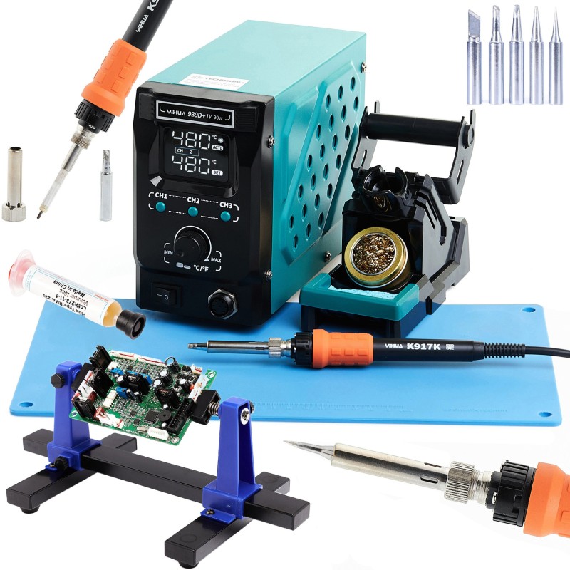 Lötstation Yihua 939D+-IV 90 W, Zubehörset mit Lötkolbenspitzen 902M und PCB-Halterung von Techrebal