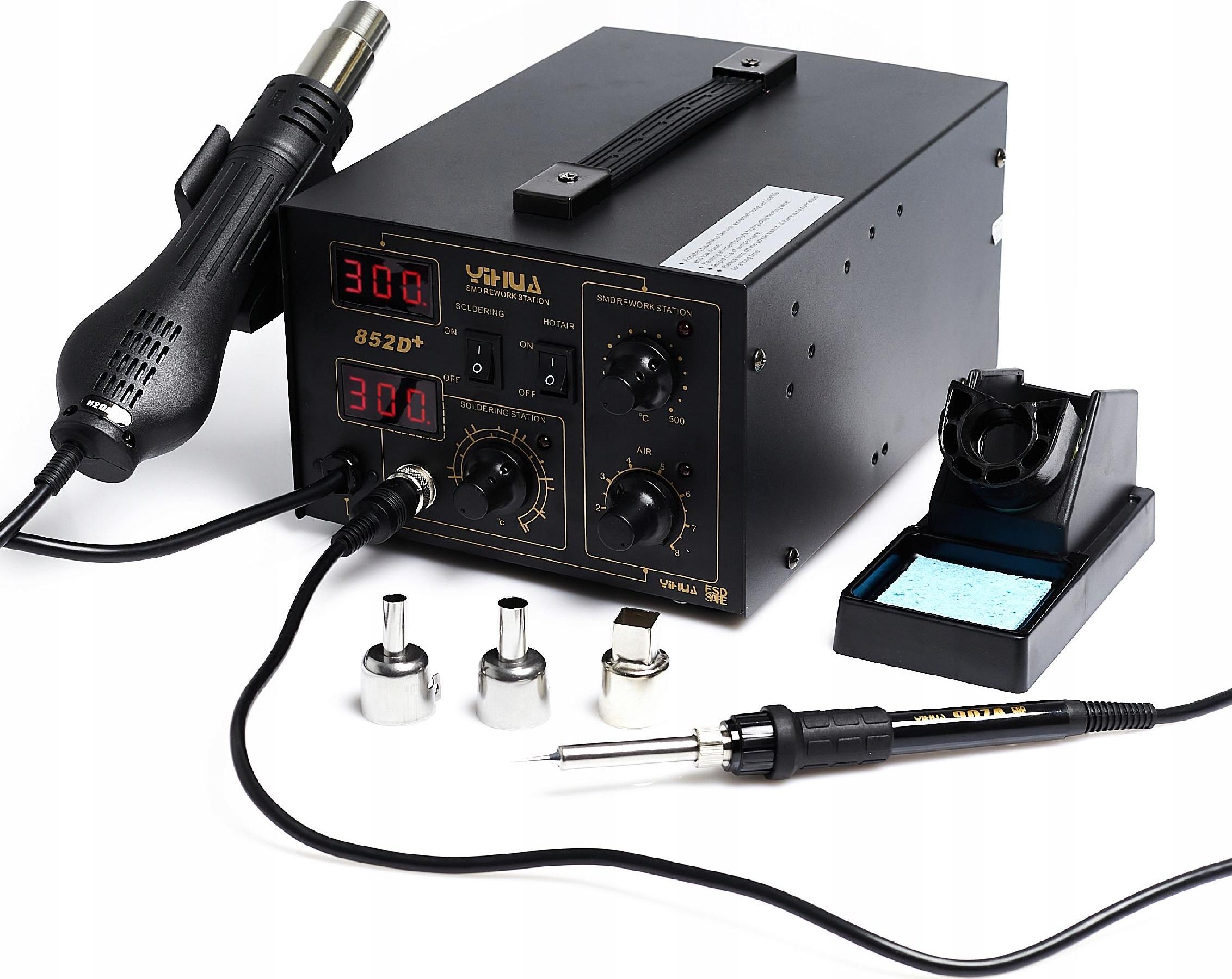 Lötstation HotAir + Lötkolben Yihua 852D+ 740 W 100–500 °C + Halterung für den Hot-Air-Lötkolben mit magnetischem Tisch Yihua 628 + Pinzette
