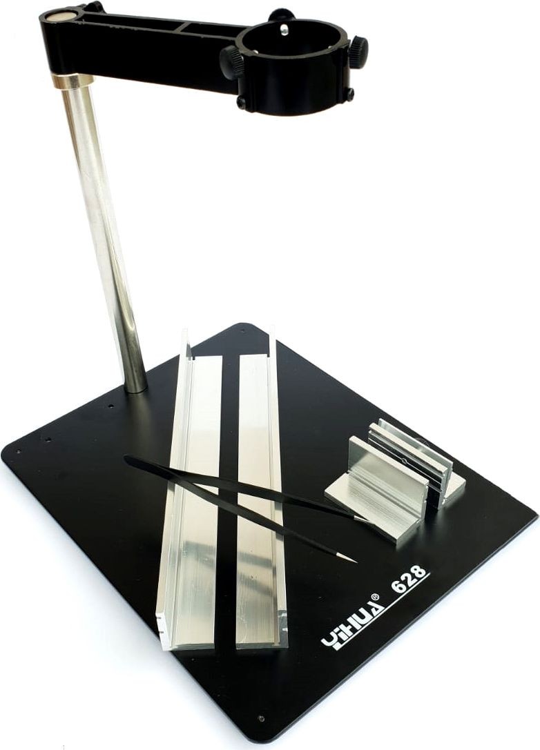 Der Yihua 628 ist ein unverzichtbarer Bestandteil jeder Werkstatt und bietet hohen Komfort. Dank der Halterung für die Heißluftpistole haben wir die Hände frei, was bei der Arbeit sehr wichtig ist. In Kombination mit dem Metallfuß und den magnetischen Halterungen in zwei Größen bildet er einen idealen Arbeitsplatz.