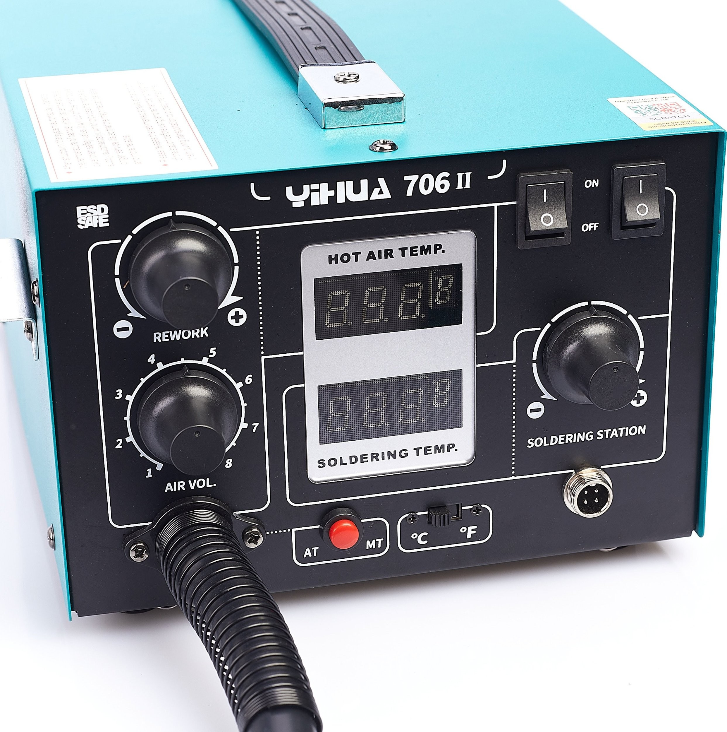 Wir freuen uns sehr, Ihnen unser neuestes exklusives Produkt vorstellen zu dürfen – die innovative 2-in-1-Lötstation Hot-Air + T12-System Yihua 706 II. Diese moderne Lötstation wurde für die anspruchsvollsten Anwender entwickelt und bietet fortschrittliche Funktionen sowie hervorragende Verarbeitungsqualität.